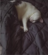 "Mój kot oficjalnie uznał moją kołdrę obciążeniową za swoją własność! Jak tylko ją rozłożę, od razu się na niej zwija i mruczy. To jego nowe ulubione miejsce – i moje też, na najlepsze wspólne drzemki!"